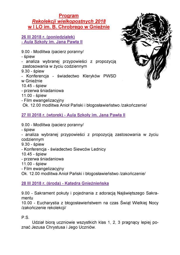 W dniach 26-28.03.2018 odbędą się Rekolekcje Wielkopostne.