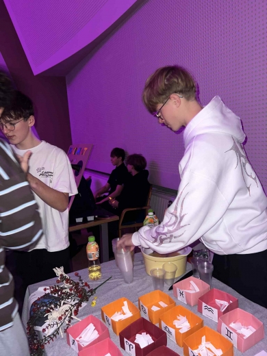 Uczniowie przygotowali kreatywne stoiska z wróżbami, które przyciągały tłumy ciekawskich — od wróżenia z rąk po przepowiednie z karteczek i magicznych kart.