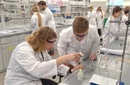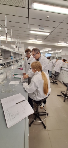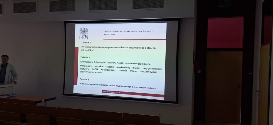 Zajęcia rozpoczęły się od mowy powitalnej pana profesora Waldemara Nowickiego, który przybliżył uczestnikom tematykę warsztatów, opowiedział o znaczeniu chemii w naukach przyrodniczych oraz zachęcił młodzież do aktywnego udziału w zajęciach laboratoryjnych.