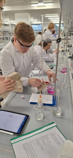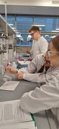 Warsztaty miały charakter praktyczny i pozwoliły uczniom poszerzyć wiedzę oraz zdobyć cenne doświadczenia. Klasy pierwsze zajmowały się procesem wytrącania soli, obserwując przebieg reakcji chemicznych i powstawanie barwnych osadów. Uczniowie klas trzecich natomiast przeprowadzali miareczkowanie, ucząc się precyzji i dokładności w pracy z roztworami.