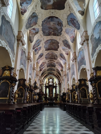 Zwiedzanie rozpoczęliśmy od Biblioteki Klasztoru na Strahowie. Spacerem przez Hradczany dotarliśmy do zabudowań Pałacu Królewskiego oraz najbardziej rozpoznawalnego zabytku Pragi, katedry św. Wita. Później zobaczyliśmy rynek starego miasta wraz z ratuszem oraz słynnym Zegarem Astronomicznym Orloj i pomnik Jana Husa.