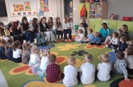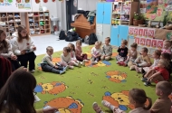 Odwiedziliśmy cztery najmłodsze grupy przedszkolne: Misie, Sarenki, Wiewiórki i Liski. Milusińscy chętnie słuchali bajek, baśni, wierszyków, zagadek i opowiadań, chętnie zadawały pytania i reagowały na czytane treści.