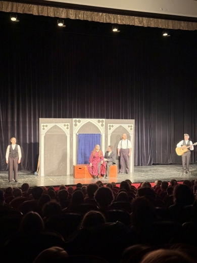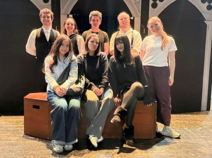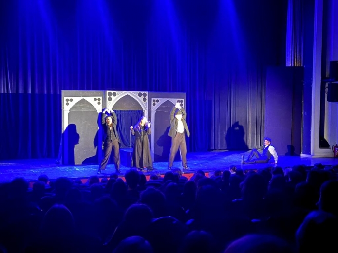W poniedziałek, 9 marca, uczniowie i uczennice naszej Szkoły wybrali się do Teatru Apollo na anglojęzyczny spektakl „A Pale Gold Ra(V)en”. Podczas przedstawienia uczniowie mieli okazję poznać twórczość Edgara Allana Poe, a przede wszystkim fragmenty jego najbardziej znanych utworów, m.in. „The Tell-Tale Heart”, „The Raven” oraz „The Pit and the Pendulum”. Mroczne historie zostały przedstawione przez aktorów w sposób jednocześnie zabawny i pełen grozy, dzięki czemu na widowni nie brakowało zarówno śmiechu, jak i momentów napięcia. Duże wrażenie zrobiła także oprawa muzyczna. Aktorzy nie tylko świetnie odegrali swoje role, ale również śpiewali i grali na instrumentach.