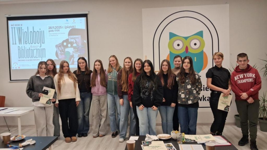 W piątkowe popołudnie 28 listopada br. w Domu Sąsiedzkim pod Sówką odbył się konkurs „II Wielobój Biblioteczny”. Drużyna naszej szkoły w składzie: Martyna Kistowska i Amelia Ręklewska z klasy 3f powtórzyła zeszłoroczny sukces zajmując II miejsce.