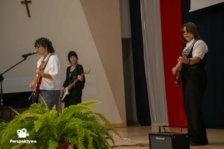 Pierwszym punktem programu był występ zespołu uczennic: Marceliny Owczarek (4e), Pauli Zakrzewskiej (4a), Aleksandry Malerowicz (4e) i Zofii Żuchowskiej (4g). Dziewczęta zaprezentowały utwór zespołu Myslovitz „Mieć czy być?”, który – jak podkreślił prowadzący – stanowić może piękną inspirację na nowy rok szkolny, aby nie tylko dążyć do ocen i sukcesów, ale także do wrażliwości, ciekawości świata i budowania relacji.