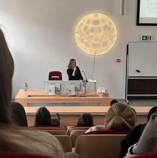 Drugi wykład poprowadziła pani profesor Karen Kuhn pochodząca aż z Południowej Afryki. Wytłumaczyła naszym uczniom dlaczego sport, a szczególnie rugby, mają fundamentalną i kluczową rolę w życiu społecznym, politycznym i kulturowym RPA.