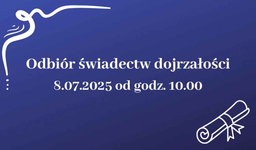 Zapraszamy po odbiór świadectw dojrzałości 8.07.2025 od godz. 10.00