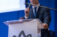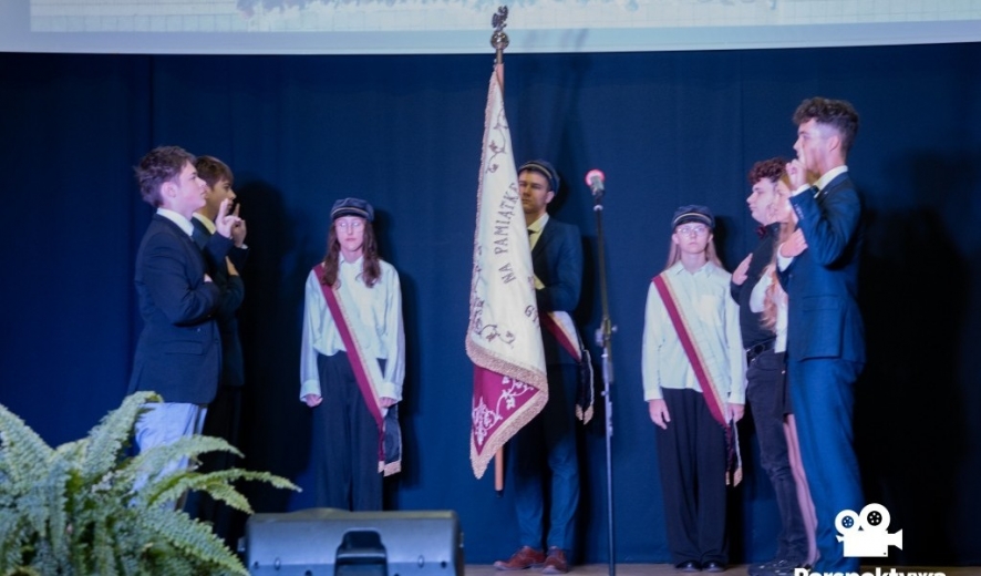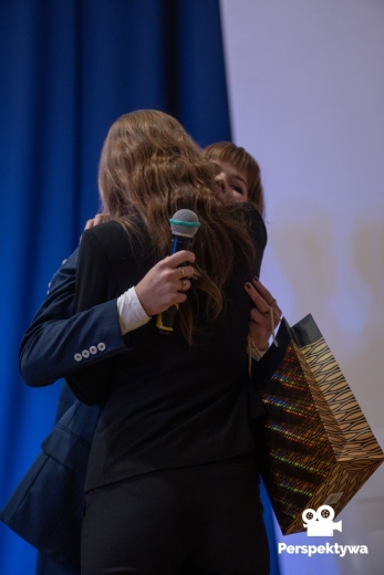 Nie zabrakło też momentów refleksyjnych. Krótkie anegdotki wygłoszone przez pedagogów ,,Szesnastki” jak również wspomnienia o nauczycielach na podstawie zapisków Kornela Makuszyńskiego, które przytoczyła Amelia Polaszewska (3b), wprowadziły publiczność w nastrój zadumy nad znaczeniem szkolnych lat. Wtedy zabrzmiał kolejny utwór – „Tolerancja” w wykonaniu Daniela Vodiantyskyiego (1c) – piękne przypomnienie, że szkoła to także miejsce uczenia się empatii i wzajemnego szacunku.