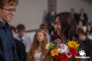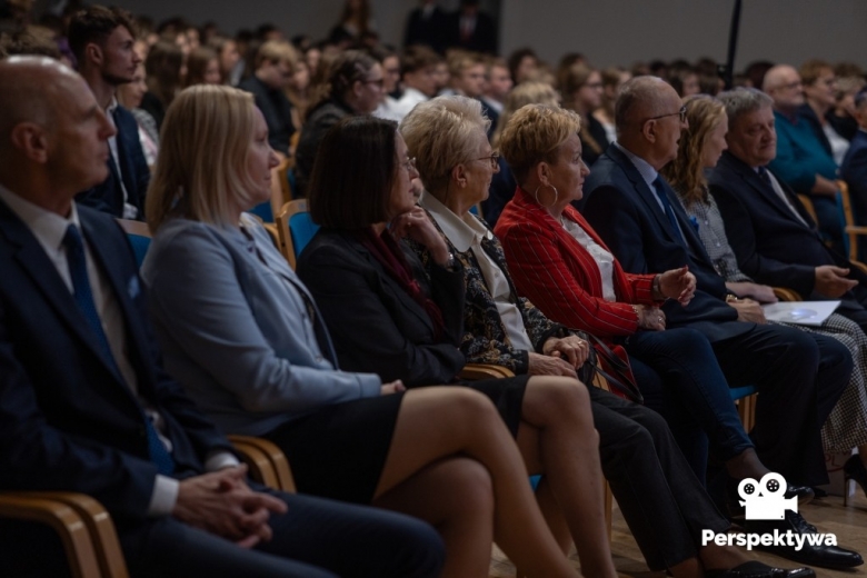 Na widowni zasiedli zaproszeni goście: Sekretarz Rady Powiatu Gnieźnieńskiego pani Monika Boruszewska reprezentująca Starostę Powiatu Gnieźnieńskiego pana Tomasza Budasza, pani Maria Kocoń reprezentująca Przewodniczącego Rady Powiatu pana Dariusza Pilaka oraz Prezes Stowarzyszenia Absolwentów I LO Jan Wesołowski. Nie zabrakło także byłych emerytowanych nauczycieli, przedstawicieli administracji i obsługi oraz – oczywiście – uczniów.