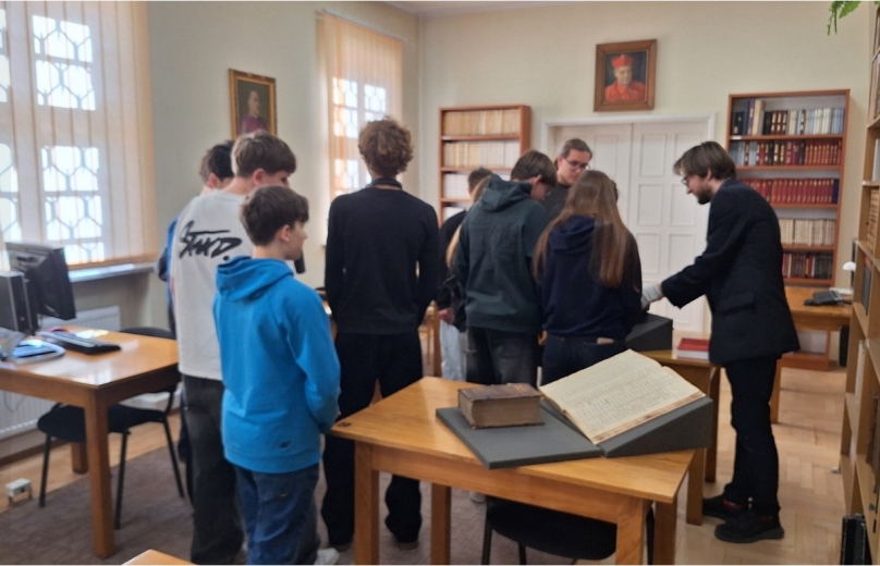 Z bliska mogli przyjrzeć się gotykowi i próbowali odczytać symbolikę średniowiecznej katedry. Potem mieli okazję zobaczyć najstarsze polskie dokumenty przechowywane w tej instytucji. Jednymi z tych dokumentów był Ewangeliarz karoliński z 800r., Złoty Kodeks Gnieźnieński, który został sporządzony w okolicach roku 1070 czy słynną Złota Bullę Języka Polskiego z 1136 r., w której papież Innocenty II na prośbę arcybiskupa Jakuba ze Żnina, potwierdza stan posiadania arcybiskupstwa gnieźnieńskiego. Dokument ten zawiera ponad 400 polskich wyrazów i jest uważany za najstarszy polski zabytek. Był to świetnie spędzony czas, podczas którego mogliśmy zobaczyć ponad 1000 lat historii.