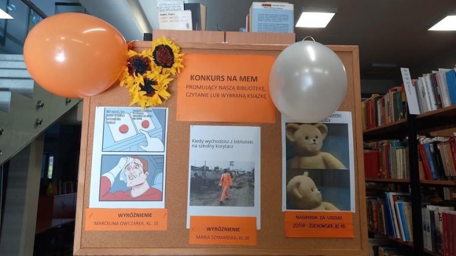 Rozstrzygnięto konkurs na mem promujący bibliotekę szkolną, czytanie lub wybraną książkę.