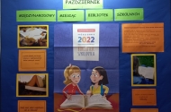 Wykonano tematyczną wystawę w gablocie nr 3 oraz ozdobiono szkolne korytarze cytatami dotyczącymi książek, czytania i biblioteki.