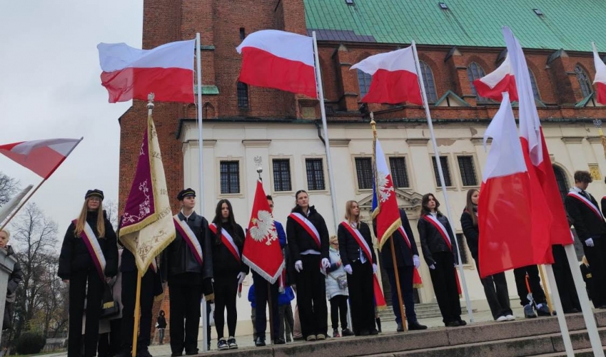 11 listopada 2025 roku poczet sztandarowy I Liceum Ogólnokształcącego wziął udział w miejskich obchodach Narodowego Święta Niepodległości.