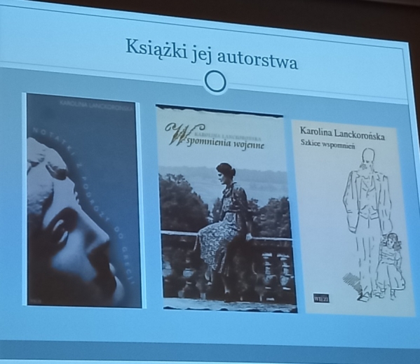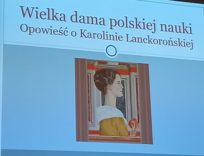 Wykład przybliżył niezwykłą postać Karoliny Lanckorońskiej, żyjącej na przełomie trzech wieków. Urodzona w austriackim Buchbergu w 1898 roku, a zmarła w Rzymie w 2002 roku, mając 104 lata. Pochodziła z arystokratycznego rodu, studiowała w Wiedniu historię sztuki, gdzie zafascynowała ją twórczość Michała Anioła, dlatego swoją pracę doktorską i habilitacyjną poświęciła temu artyście.