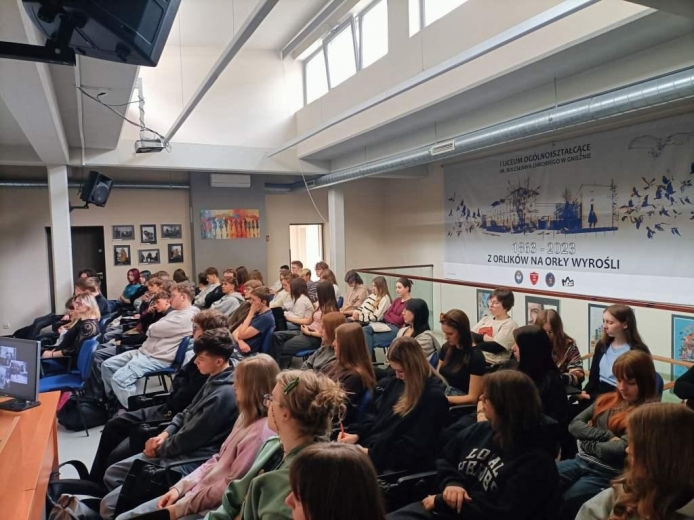24 marca 2026 roku w Czytelni na piętrze I Liceum Ogólnokształcącego im. Bolesława Chrobrego w Gnieźnie odbył się wykład poświęcony tematowi „Życie codzienne w okupowanej Wielkopolsce 1939–1945”. Prelekcję poprowadził Marcin Podemski Instytutu Pamięci Narodowej w Poznaniu. W interesujący i przystępny sposób przybliżył on uczniom realia życia mieszkańców Wielkopolski (tzw. Kraju Warty) w czasie II wojny światowej.