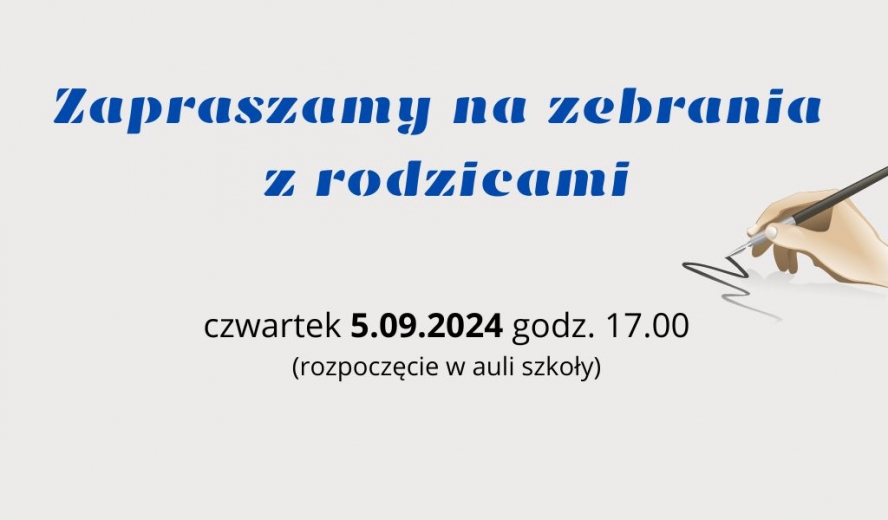 Zapraszamy na zebrania z rodzicami - czwartek 5.09.2024 godz. 17.00